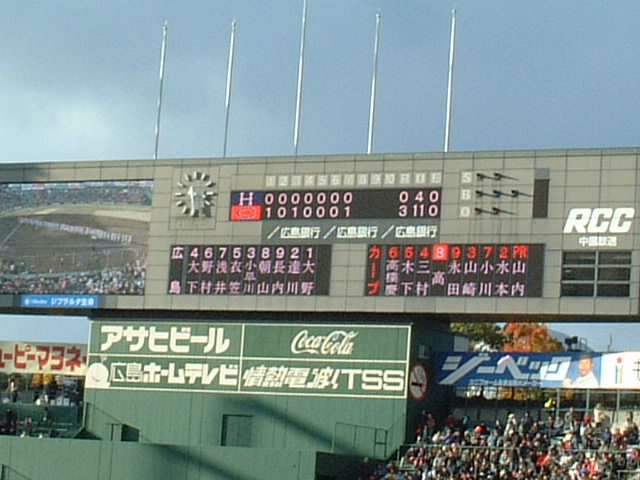 試合はチーム「カープ」が二点先制したまま最終回を迎え……