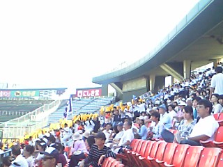 動画を見てくだされば分かりますが、私はどうせ内野は同じ値段なんだから! ということで、バックネット裏の傍に友人&後輩とどっしり座っていました。